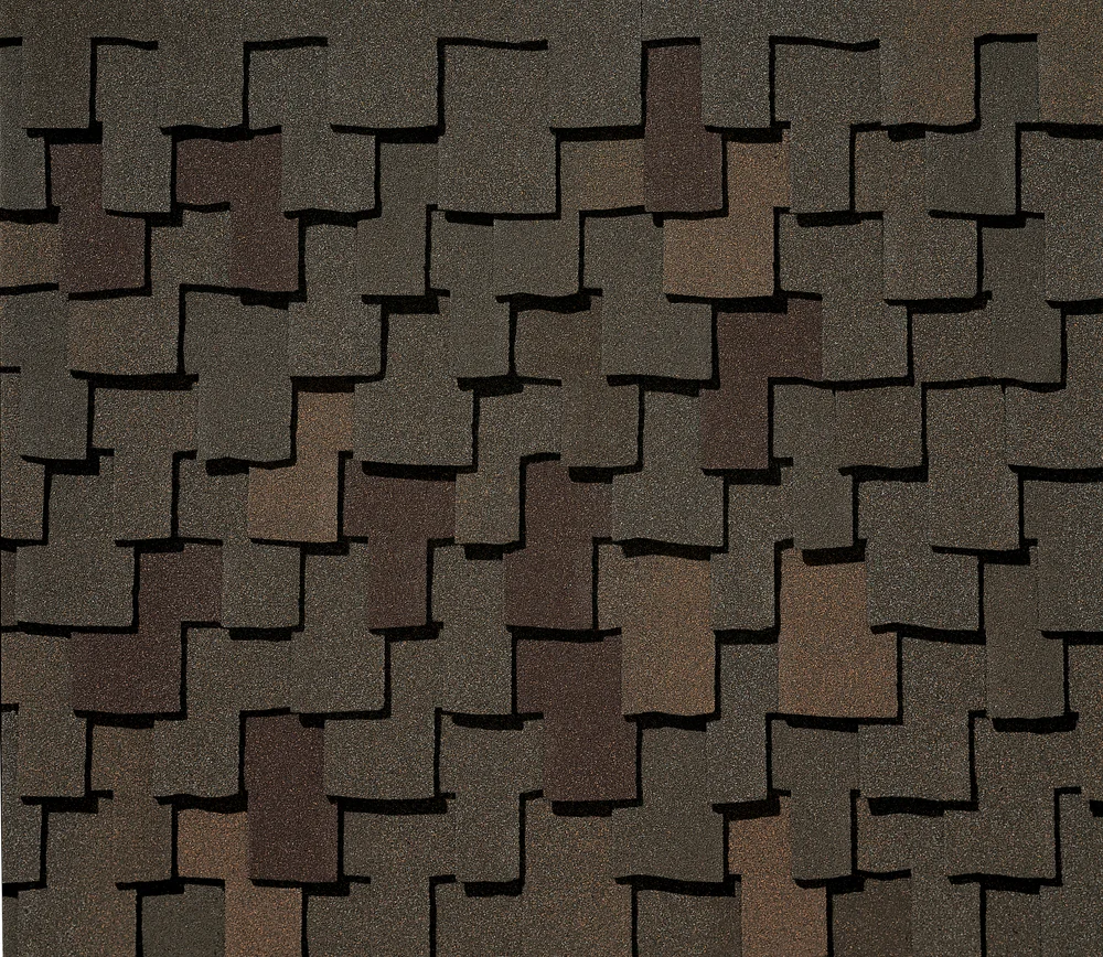 Wider-cut tab with a rando-cut sawtooth design to replicate a wood-shake. The chocolaty rich browns and blacks combine in Chestnut to create a homey warm feeling. Color and product availability.